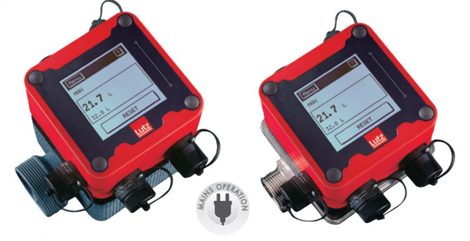 Lutz flow meters serie TS types ST10/RM10, SL10/RM10, VA10/RM10 with preselection for transferring non flammable liquids.